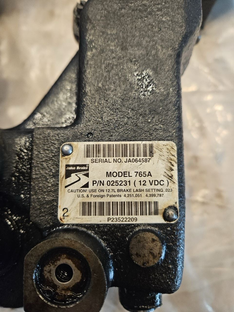 We offer Complete DETROIT SERIES 60 12.7L ENGINE JAKE BRAKE ASSEMBLY MODEL 765A # 025231 at the price of $1,500.00.